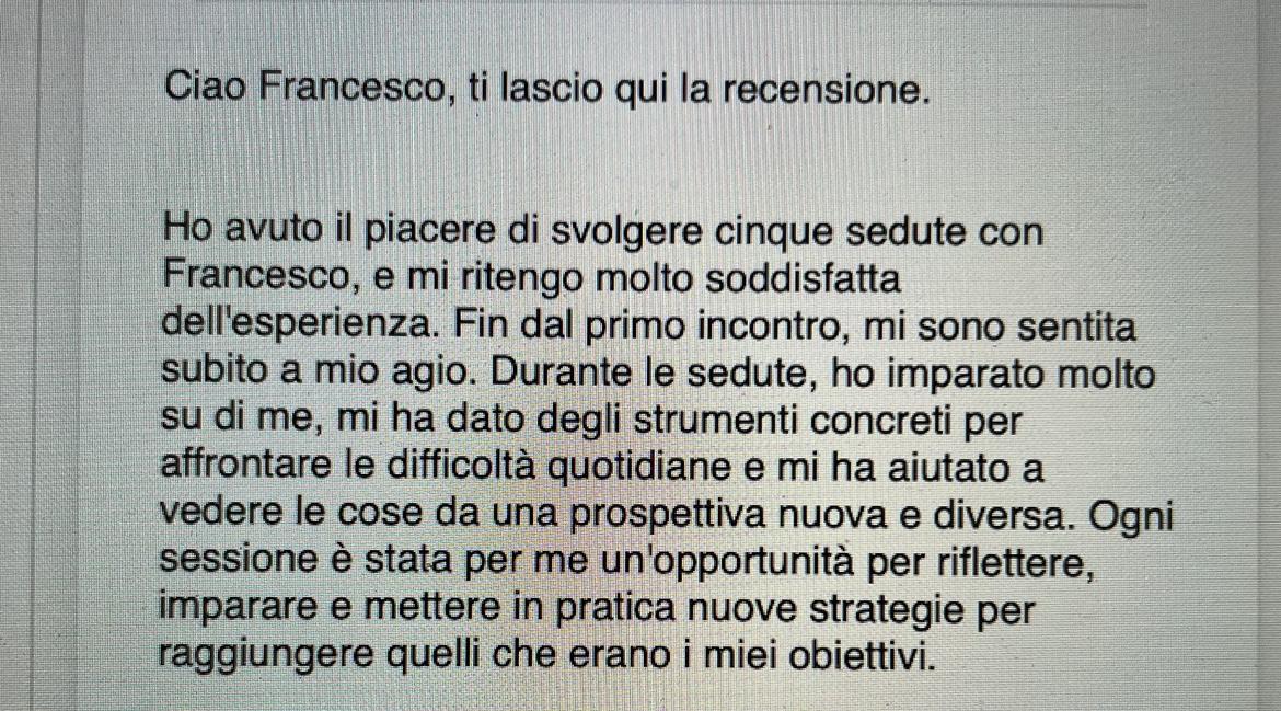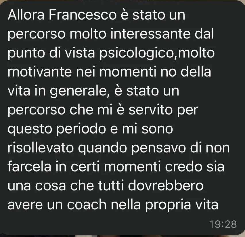 Da lì è iniziato tutto. Francesco ha trasformato quelle esperienze in ricerca: si è laureato in psicologia, ha approfondito la psicocibernetica e lo studio della performance mentale, ed è diventato mental coach certificato. Ha poi ampliato le sue competenze con la certificazione come business ed executive coach, sviluppando strumenti unici anche per il lavoro su leadership, comunicazione e gestione della pressione.